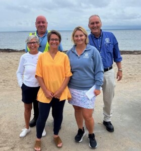 The committee was led by Brian Callanan and Terry Saunders. On Sunday, Brian, Terry, Steve Saunders, Bill Lee and Pat Albanese gathered to bag all the bagels and pastries. They along with Carole Mendoza, Anne Prior, Scott Puopolo and Laura Puopolo gathered at 7:00 am set up the food inside the bathhouse due to possible rain showers. The Falmouth Enterprise was in attendance and wrote a story that was on line on Tuesday, 07/30/24 and in the paper on Friday, 08/02/24.