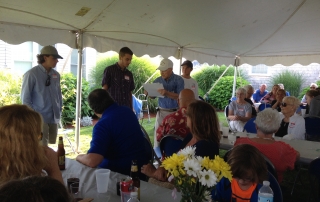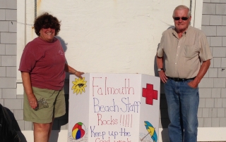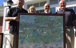 Bill and Joan Swift were given a rousing round of applause as they were recognized for their stewardship of a Falmouth landmark at the Old Stone Dock Association's Annual Meeting on Sunday, 07/31/16. The Swifts recently moved from their home on Mill Road to Joan's childhood home on the other side of Salt Pond. For 36 years they toiled to restore the carriage house and re-create the gardens that were all that remained of the Victorian-era splendor of the John Dwight estate. The main house of Mr. Dwight, the founder of Arm & Hammer Baking Soda Company, was set where the Mill Road parking lot is today. It was built in 1884 and was destroyed by the Hurricane of 1944. Bill and Joan were presented with an etching of the Old Stone Dock, done by Falmouth artist David Etler, in appreciation for the talks that Bill has given to numerous audiences, and their promotion of the history, culture, beauty, and values of the Town of Falmouth. Also recognized for her many contributions to the town, was artist Karen Rinaldo, the designer and illustrator of the Falmouth Preservation Alliance's Heritage Map featuring Falmouth Village. This area was the site of the original settlement of Suckanesset and the Old Stone Dock, which was the center of commerce for the town from 1806 until the Inner Harbor was dredged in 1908. Town Manager Julian Suso and his wife Stephanie were on hand to acknowledge the gift of the map from the Association that now hangs in the vestibule of Town Hall. Several members were also commended for their contributions to the civic life of the town. Brian Nickerson stepped up to chair the Friends of Nobska Light, Director Rocco Maffei is the President of the Historical Society, Barbara Weyand Chairs the Falmouth Preservation Alliance, Past President Jim Fox and Paul Dreyer serve on the Planning Board, Ahmed Mustafa chairs the Veterans Affairs Council, Director Anne Prior hosted an Appreciation Breakfast for Falmouth lifeguards, and many more participate at many levels. Police Chief Ed Dunne and Fire & Rescue Chief Michael Small, along with Beach Superintendent Don Hoffer, and DPW Assistant Director Peter McConarty and their wives were applauded for their personal involvement with the community. Sheriff Jim Cummings supplied the tents and chairs, while his son, Falmouth Police Sgt Jim Cummings, is the Community Liaison Officer for the OSDA neighborhood. Four recent high school graduates were also given $500 scholarships. Brian McCormick will be attending James Madison University in Virginia, Eoin Doherty will attend Massachusetts Maritime, Lois Girard's grandson Andrew Jewers is going to U Mass Amherst, and Madeleine Brabrook will head to Georgia Institute of Technology. The Mae Crossen Scholarships are funded through member dues and contributions, and a generous gift from Tony and Lance Panigutti, the organizers of the Falmouth Triathlon. The scholarships are a token of the pride the community has for the academic and extra-curricular achievements of these young citizens who are children and grandchildren of members. As usual, [...]